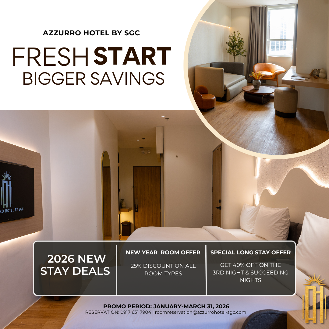 Discover luxury and top hospitality at Azzurro Hotel by SGC. Experience comfort in our newly renovated rooftop, restaurant, business rooms, and Kapampangan-inspired rooms. Retreat in style!